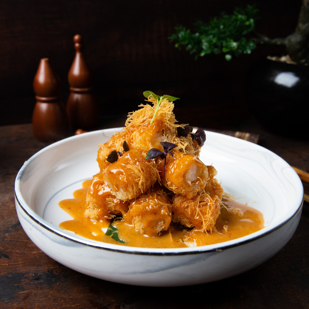 Deep fried shrimp coated with Kunafa vermicelli, drizzled with special sauce.