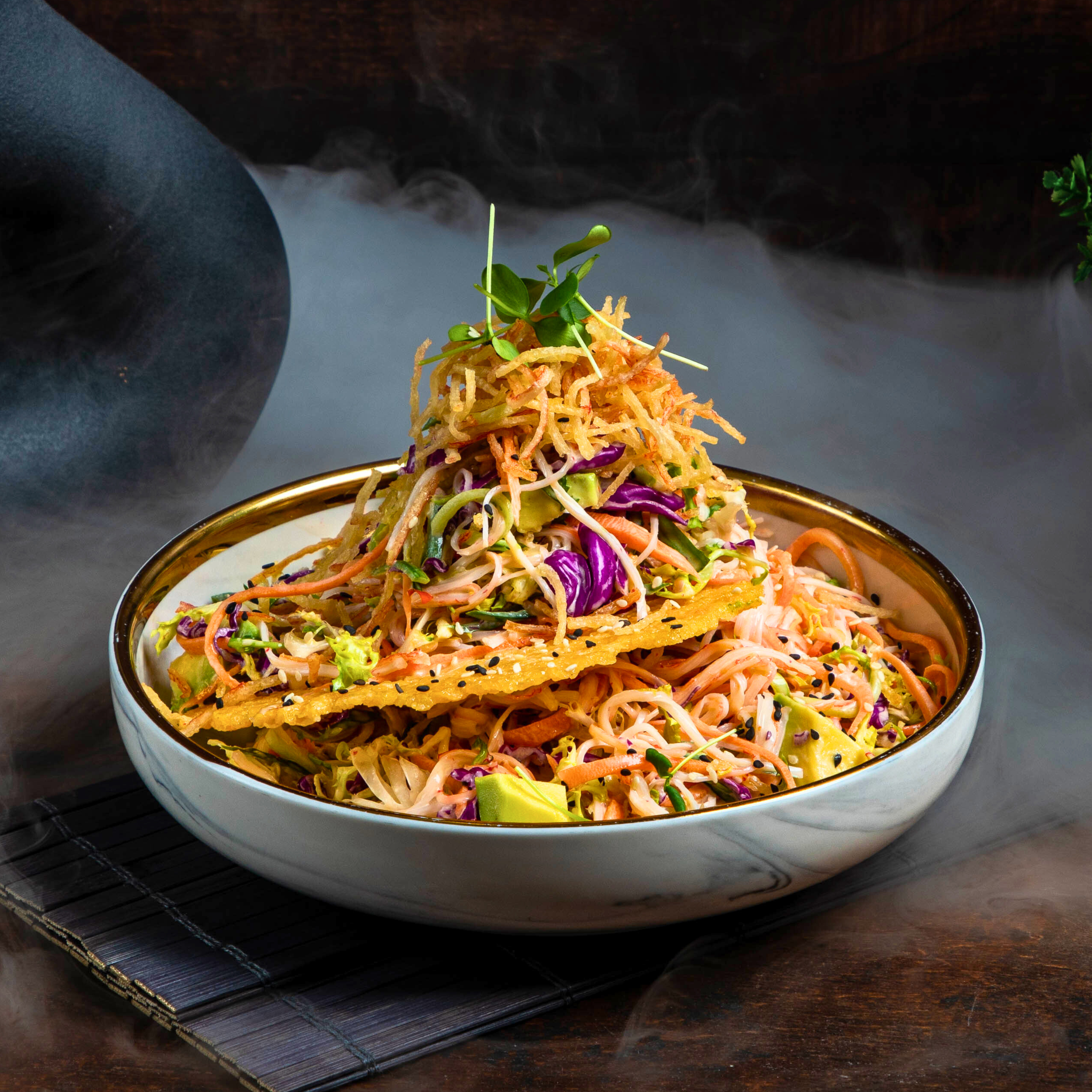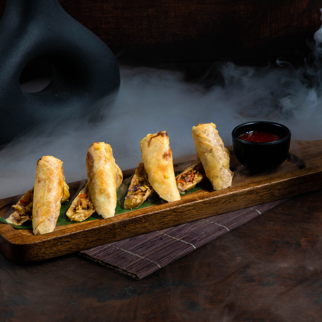 مزيج ملون من الخضار المختلطة، يأتي ملفوفًا في قشرة رقيقة ومقرمشة ومقليًا إلى درجة الكمال في الزيت النباتي. يقدم مع طبق جانبي من الصوص الحلو والحامض اللذيذ
