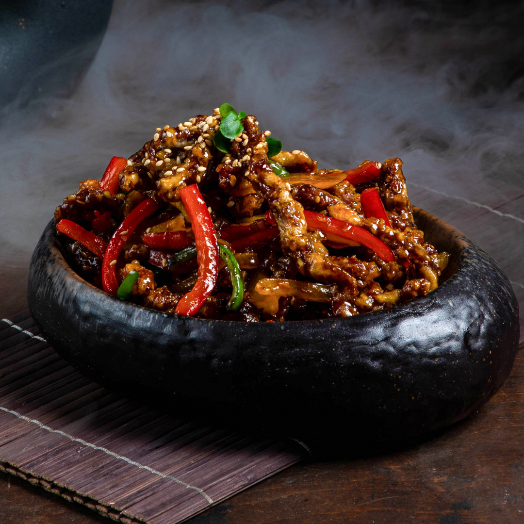 Tender strands of marinated beef are lightly coated in corn flour and fried in sunflower oil to achieve an irresistible crunch. Infused with the bold flavours of dried special beef sauce, long chilli and chopped garlic, each bite delivers a perfect harmony of heat and savour.