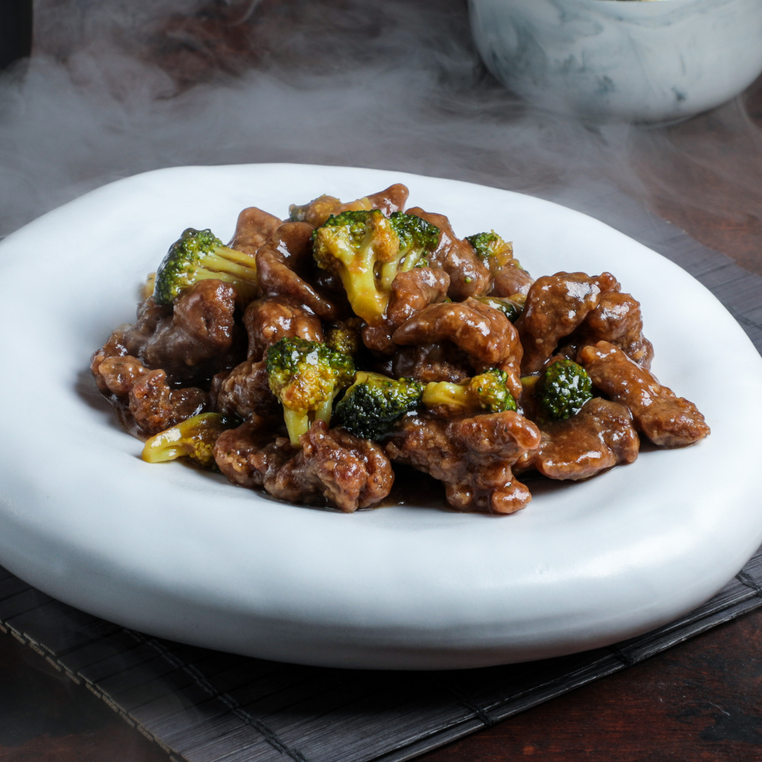 يتميز بقطع طرية من لحم البقر المتبل والمقلي في زيت عباد الشمس الخفيف مع البروكلي الطازج النابض بالحياة.