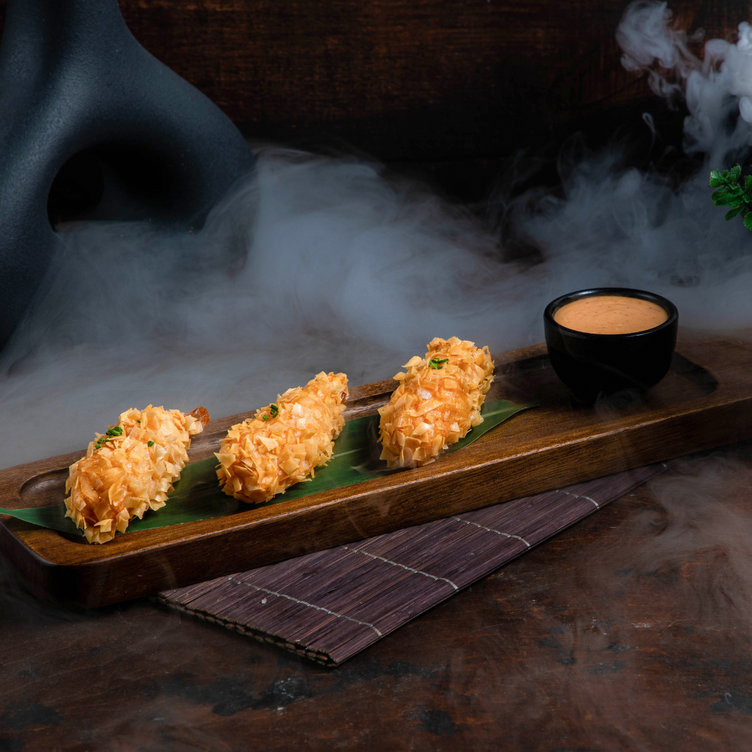 Marinated prawns are crisped to perfection in premium vegetable oil. Served with our irresistible Dynamite Sauce for a creamy, spicy kick and garnished with fresh chives for a hint of elegance.