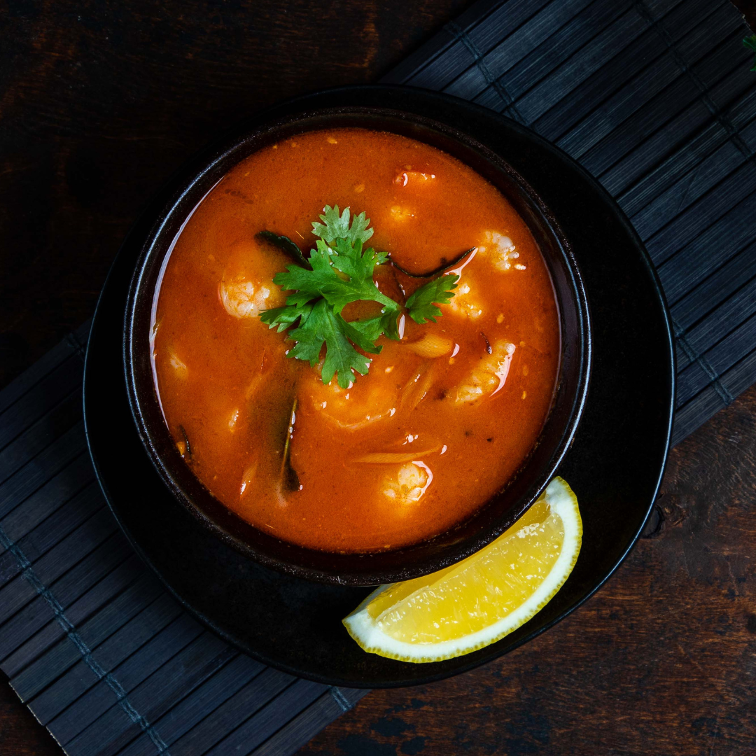 This vibrant and aromatic broth is a symphony of hot and sour tastes infused with traditional herbs and spices. Each spoonful offers a burst of lemongrass, galangal, and kaffir lime leaves harmoniously mingled with the umami richness of fresh seafood. It's a Thai culinary masterpiece.