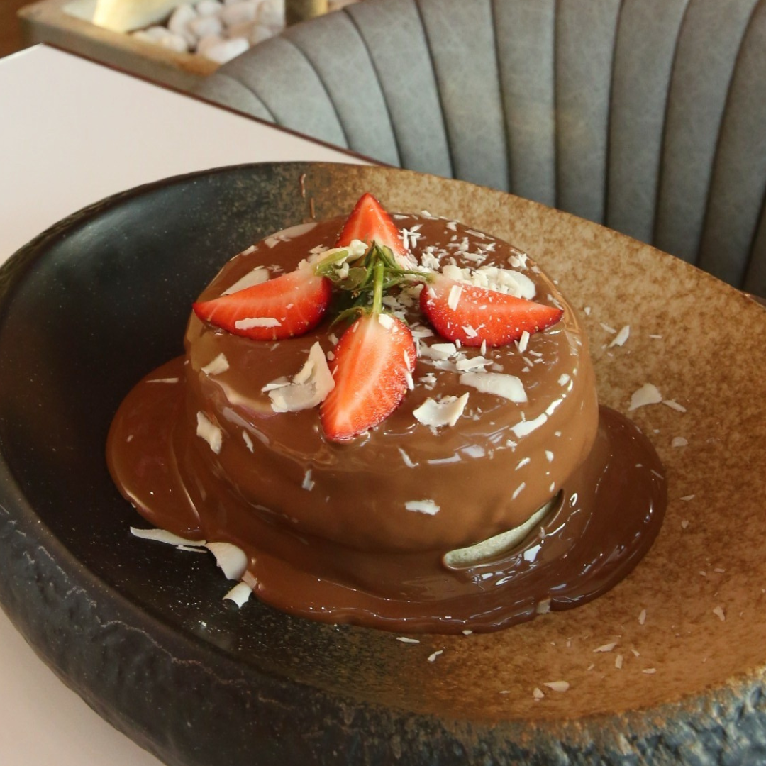 Homemade fluffy sensation served with special pistachio sauce and garnished with pistachio nuts.